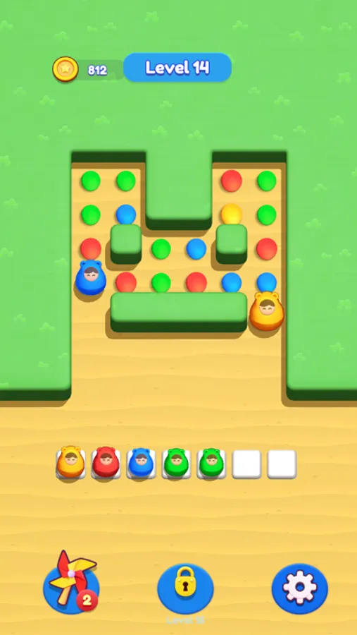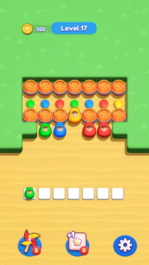 Match three or more dolls of the same color and watch them stack together!