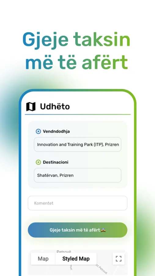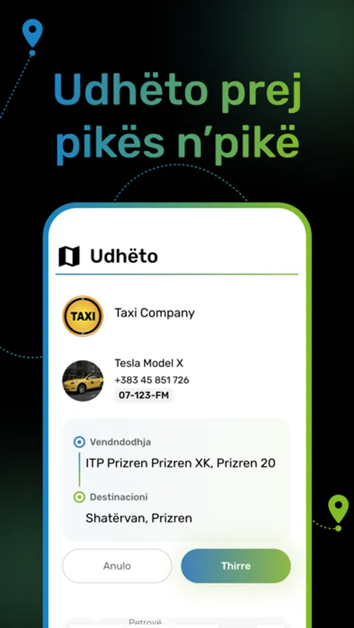 - Gjeje Taksinë Tuaj: Përdorni aplikacionin për të gjetur taksinë tuaj të preferuar në çdo kohë dhe në çdo vend. Zgjidhni nga një gamë e gjerë e taksive të licencuara dhe shoferëve të certifikuar.
