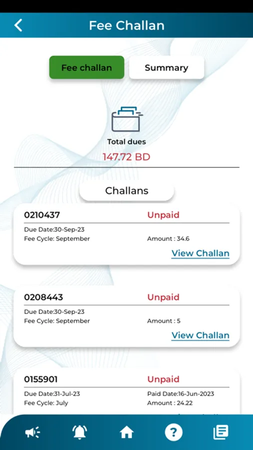 • Fee challan