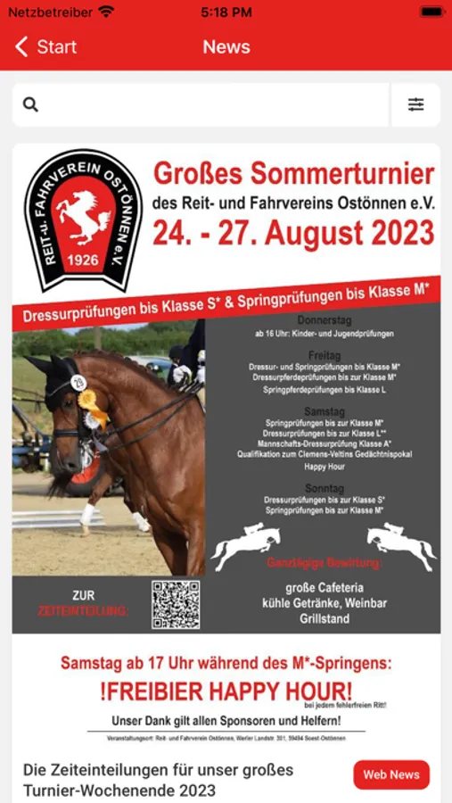 Ab sofort sind nicht nur unsere Mitglieder sondern auch der Verein mobil. In unserer eigenen App könnt ihr euch unter anderem über Aktuelles aus dem Verein informieren, Sportangebote suchen, Termine einsehen und Fan-Reporter werden. Der Reit- und Fahrverein Ostönnen e. V. bietet mit dieser App interessante Einblicke für Fans, Mitglieder und Interessierte.