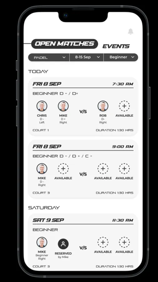 Court Booking - Reserve your Padel or Pickleball court with just a few taps.