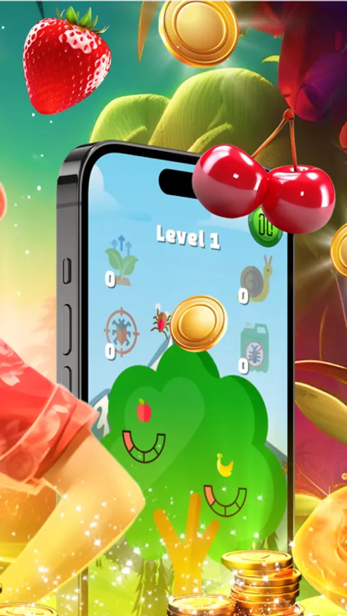 As you eliminate the bugs, the fruits will ripen, and it will be time to gather the ripe delights. Your task is to navigate through the maze, collecting all the ripe fruits to progress to the next level. Each collected fruit reflects your ability to nurture nature's bounty.