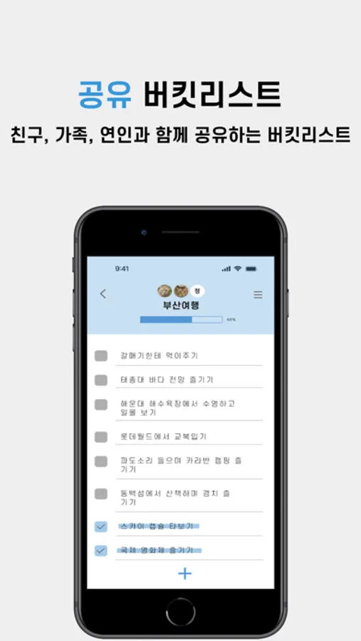 - 함께 작성한 버킷 리스트를 실시간으로 확인하고 진행 상황을 파악해 보세요.