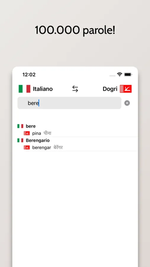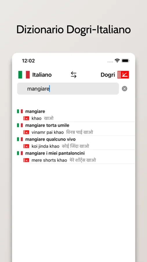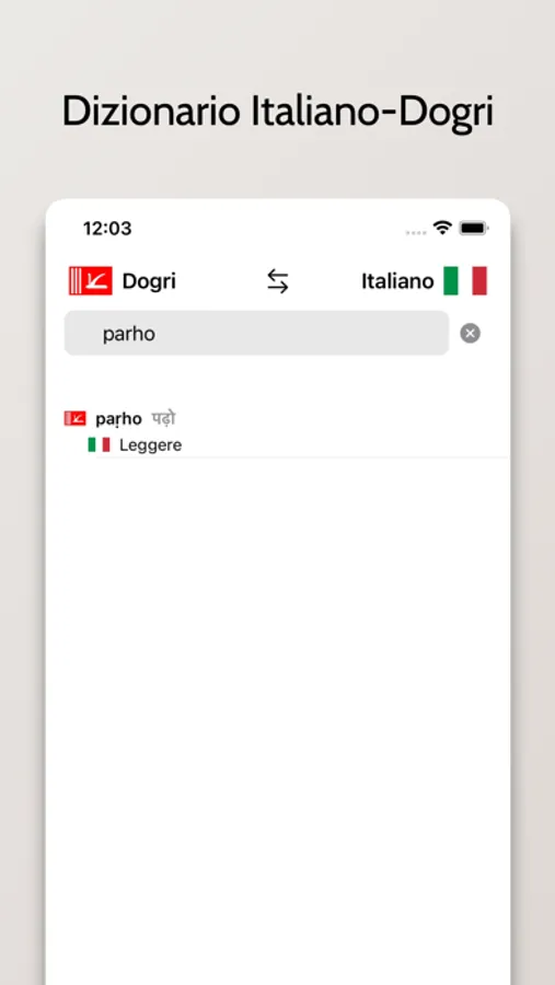 - Possibilità di cercare a partire da parole in Italiano o Dogri