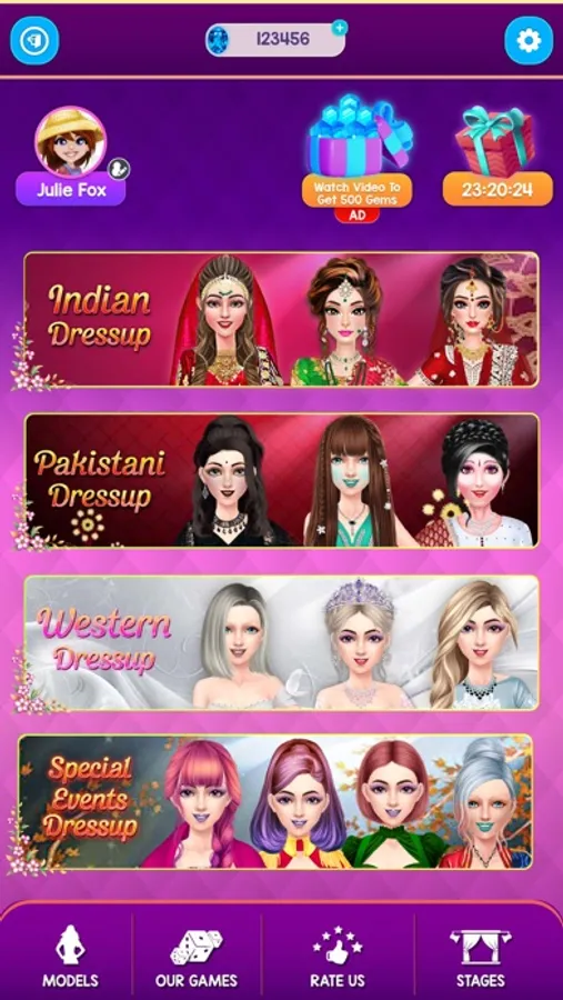Indian Dress-up: In this makeover and dress-up game, you can style the fashion girl in Indian attire. We offer an extensive collection of stunning clothing items, ranging from chic dresses and trendy Indian tops to elegant gowns and casual dresses.