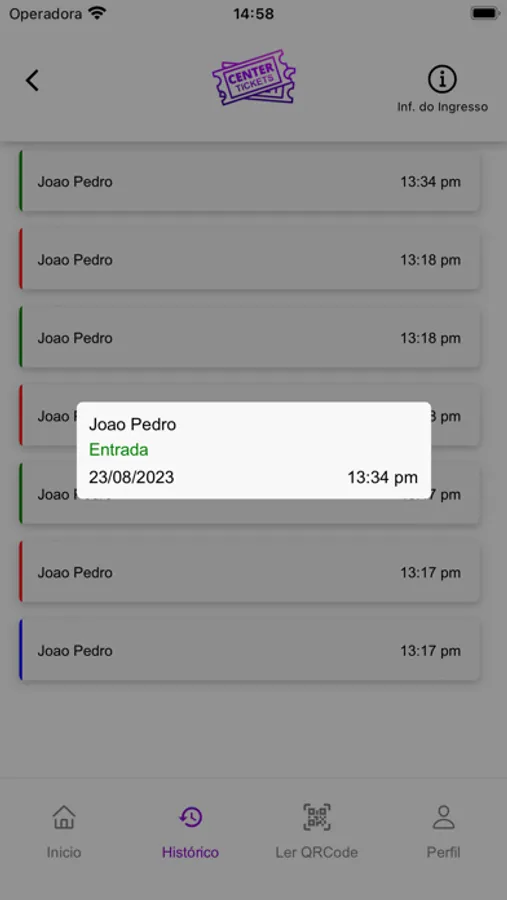 O Center Ingressos Recepcionista é um aplicativo gratuito onde o organizador do evento usará esse aplicativo para ler os ingressos dos clientes em QR Code, ele verifica se o ingresso é verdadeiro. Nele também ficará armazenado todas as informações de entradas e saídas das pessoa do evento.