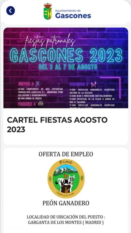 Ayuntamiento de Gascones. Información sobre noticias locales, agenda cultural y deportiva, callejero con mapa y geolocalizador, teléfonos de interés, horario de autobuses, notificaciones..