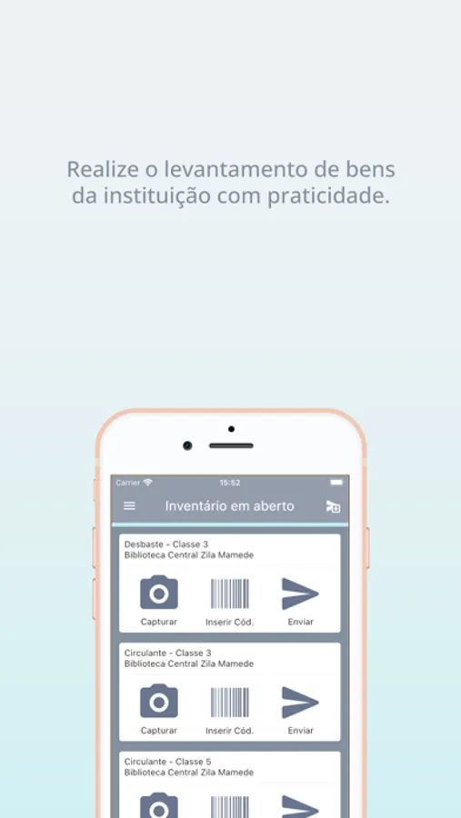 - Captura: possibilita a leitura do código de barras por meio de escaneamento.