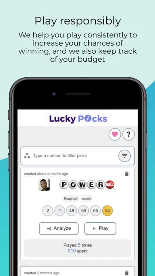 You can also just select your favorite numbers, and the app will show you their statistical performances, and keep track of your plays, enabling you to play consistently and track your budget.