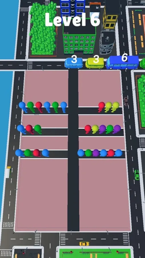 Sort the people in their own sections according to their colors and try to put them on the incoming vehicles. Be sure to send the appropriate number of people of color as you do this.
