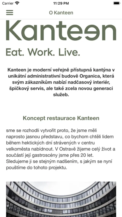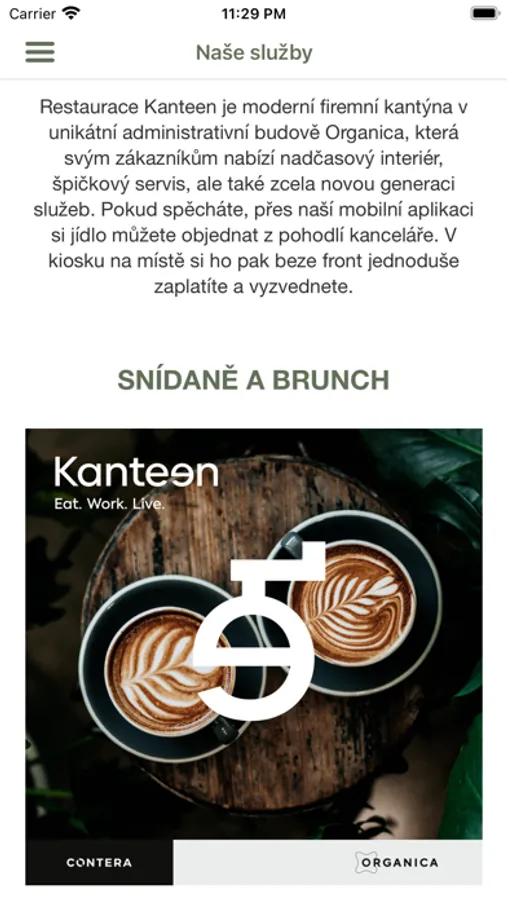 Kanteen je moderní veřejně přístupná kantýna v unikátní administrativní budově Organica, která svým zákazníkům nabízí nadčasový interiér, špičkový servis, ale také zcela novou generaci služeb.