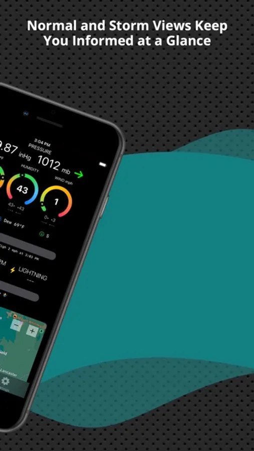 The "Storm View" displays all the above items except sky conditions. In its place, Teapot for Tempest displays a live weather radar map for your location. It updates automatically so no user intervention is necessary. Whenever you are expecting a storm, all you need to do is tap the 'Storm View" icon, and everything you need to see will be right there.