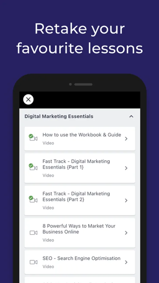 Access your favourite courses and communities, from one convenient place.Learn when it works best for you at work, at home or on your commute with video, audio, text and other popular lesson types formatted for mobile.