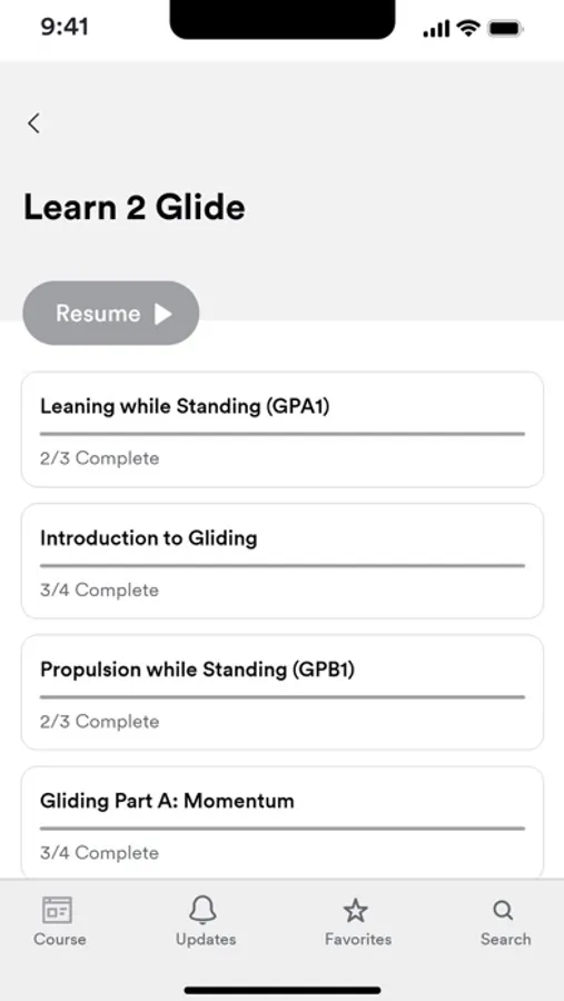 Inside the Learn 2 Glide app you can:
