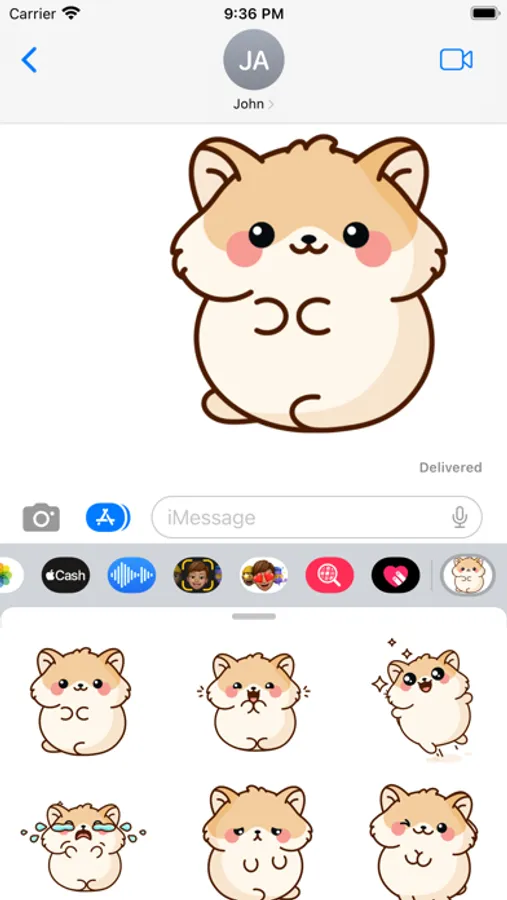 Dive into the whimsical world of The Happy Hamster, crafted exclusively for iMessage! Whether you're sharing daily tales, expressing varied emotions, or simply wanting to bring a smile to your conversations, The Happy Hamster stickers are your perfect companions.