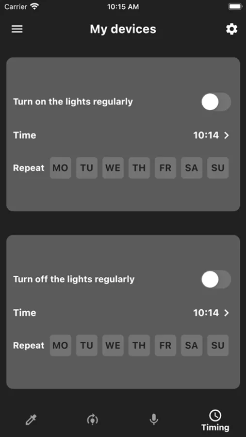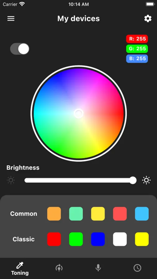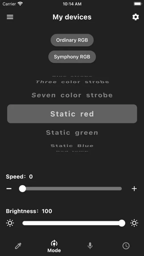 Starlight Pro controls the strip via Bluetooth and can change the strip color, brightness, rhythm mode, and timer on/off.