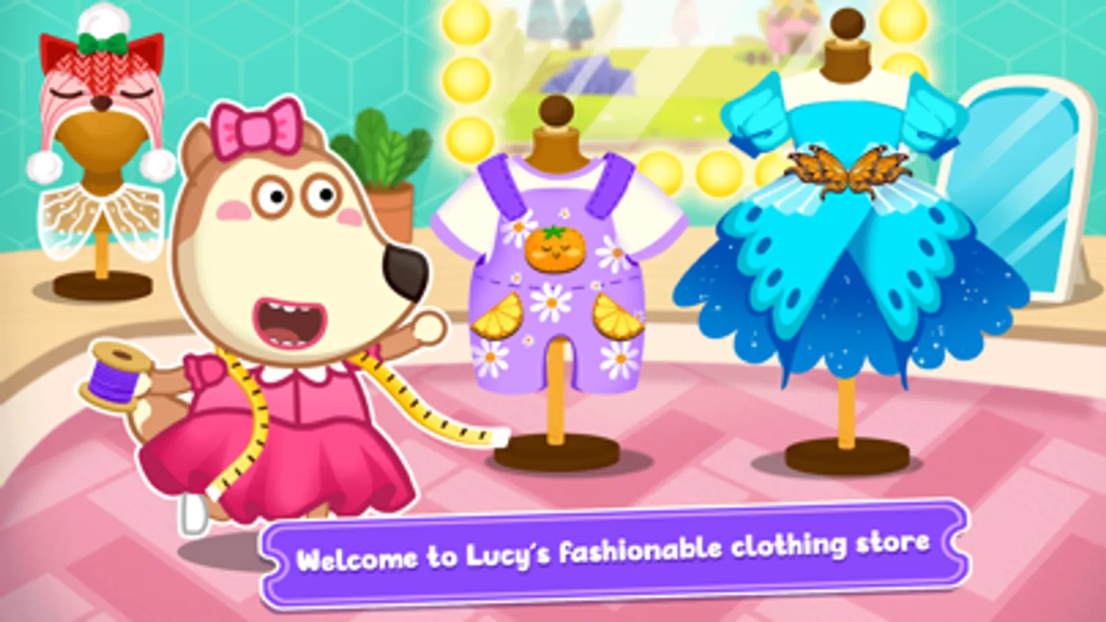 This is an amazing dress game that includes many girl games such as: princess dress, fashion style, dress up princess, clothing store games, tailor fashion, girl make up, beauty contest. Let's have fun with Lucy in this princess fashion game. It's different from other style games, like barbie games, diana dress up, covet fashion, toca tailor, prinsessan, fashion city, my boutique. This Lucy dress up game is a story in Lucy's fashion boutique. She can be a tailor who makes many beautiful princess dress for her customers. She can be an outfit designer who designs dress, shirt, hat, shoes by her gorgeous style. Please help Lucy choose colors and accessories for some outfits that she is going to design. Let's make a cool collection of fashionable outfits in these makeup and dress up games for girls. No more model games, barbe games, makeup games for girls, or beautiful dollhouse, let's download this Wolfoo kindergarten dress up game to play and enjoy all day.