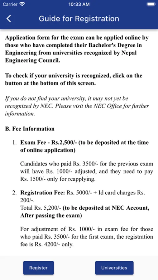 Get ready to excel in the Nepal Engineering Council (NEC) license exam with our app designed to streamline your preparation journey. Dive into the exam syllabus, stay updated with essential dates, and understand eligibility criteria effortlessly. Whether you're an engineering student or a professional, our app equips you with the crucial information needed to succeed in the NEC exam.