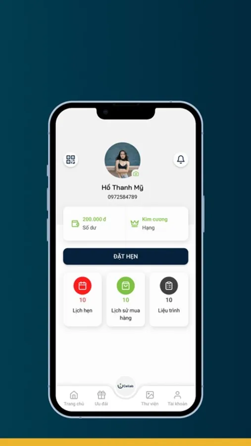 - Theo dõi lịch sử sử dụng dịch vụ, liệu trình, số dư tài khoản, điểm thưởng