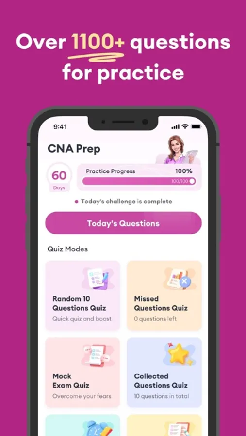 CNA Exam Practice 2023 is an application carefully designed and developed by industry exam experts. With more than 1,100 high-quality questions and answers, multiple testing modes and a scientific analysis system, it helps you practice anytime, anywhere, making it more likely that you will pass your CNA certification exam in one go!