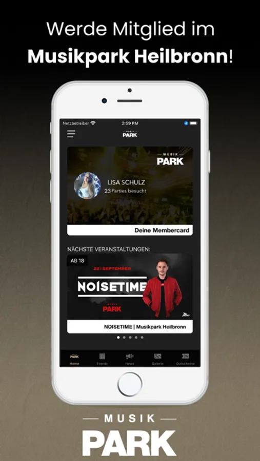 Lade dir unsere Musikpark Heilbronn App herunter und werde Mitglied im Memberclub.