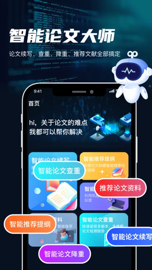 《智能论文大师》App是一款为学术界和研究人员量身打造的智能工具。它集成了多项强大的功能,旨在帮助用户轻松高效地完成论文写作和研究工作。
