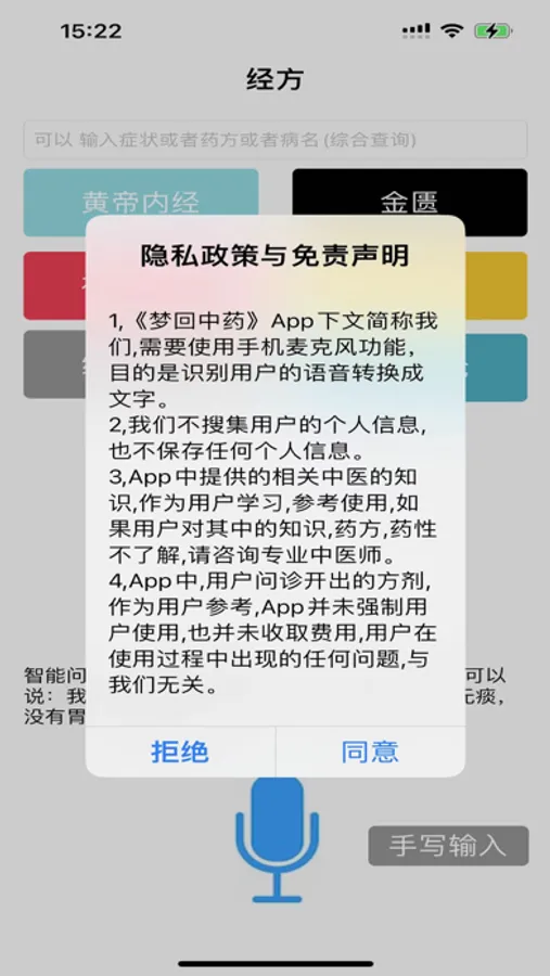 2,App中提供的相关中医的知识,作为用户学习,参考使用,如果用户对其中的知识,药方,药性不了解,请咨询专业中医师。