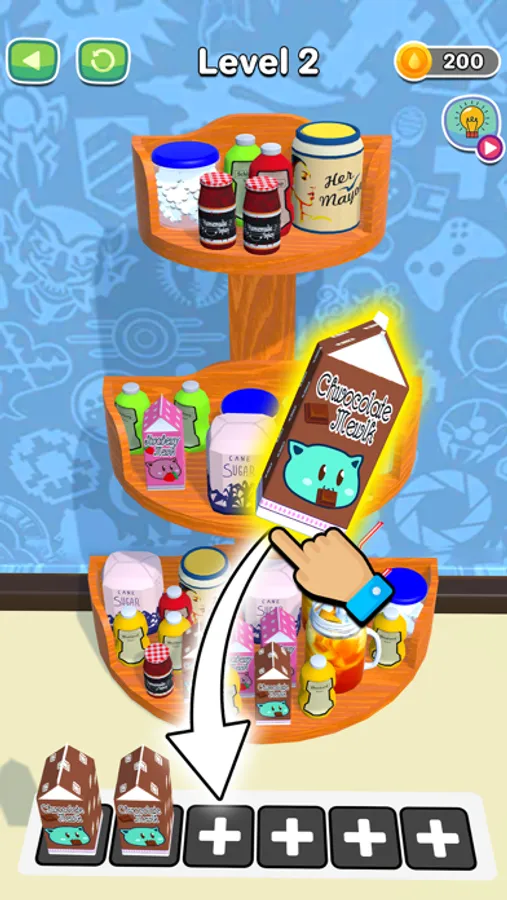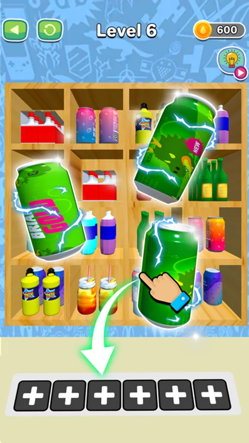 In this Goods Triple - Vending Sort game, you can categorize snacks, drinks, and fruits and explore the fun of 3d sort, unlocking more of your favorite products. The sort it 3d game is straightforward, just drag the same products to several shelves for pairing or organize the fridge.
