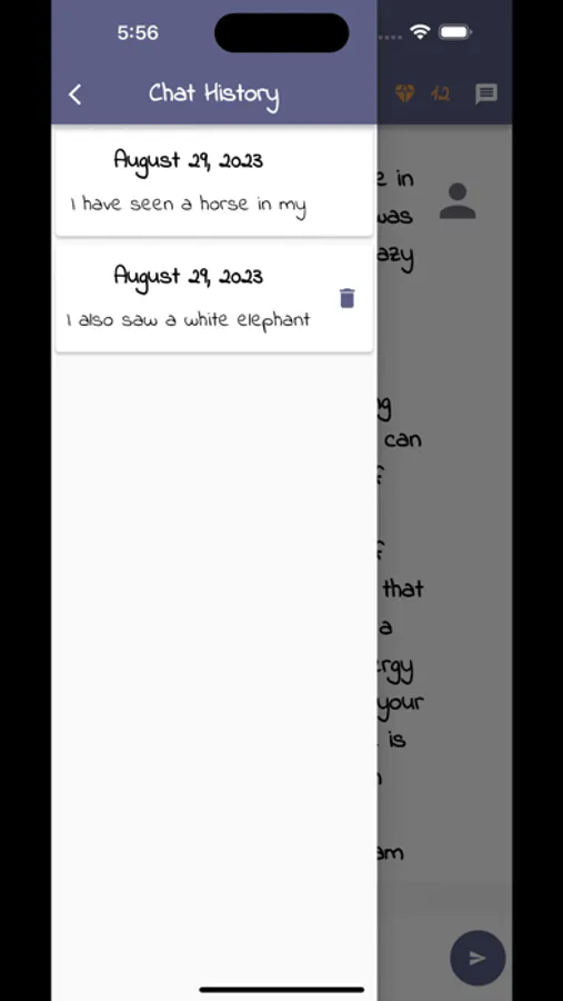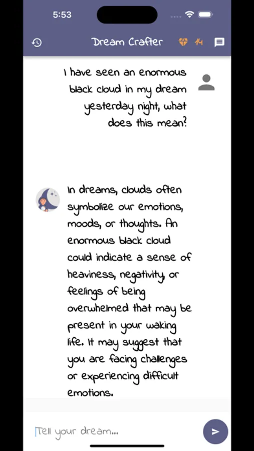 Keep track of your dream interpretations in the chat history feature.