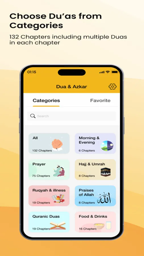 Navigate through a plethora of Duas effortlessly by exploring categories tailored to various life scenarios. Categories include Morning and Evening, Prayer, Food and Drink, Hajj and Umrah, Travel, Nature, Praising Allah, Sickness and Death, Joy and Distress, Home and Family, and Good Etiquette, among many more.
