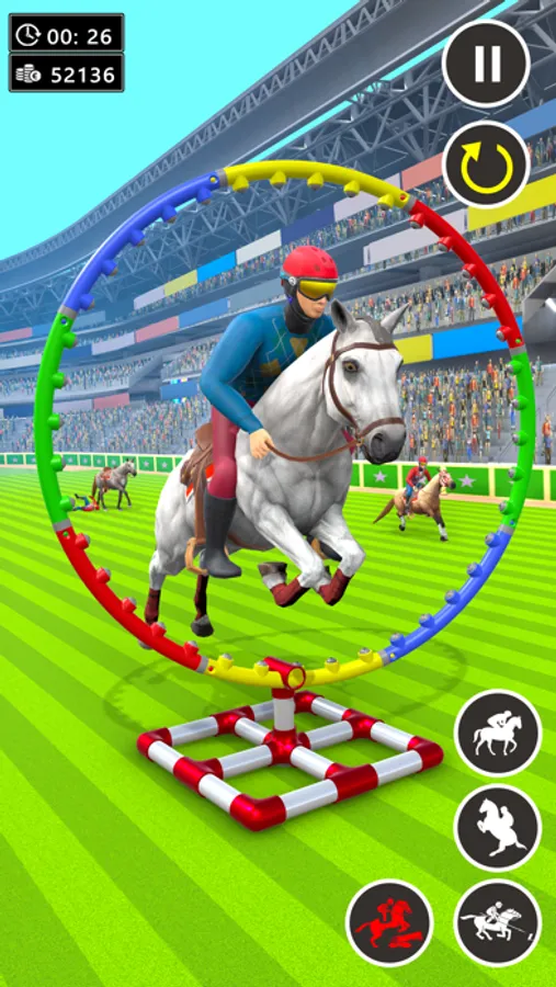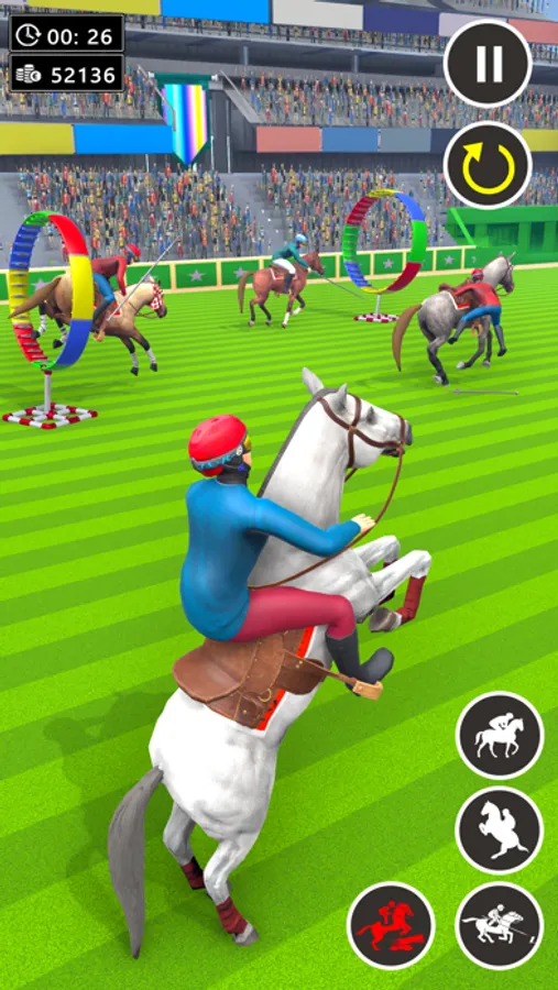 Train your wild horse for tent pegging challenge while racing with rival horses in this horse riding game and ultimate horse racing simulator games. You need to jump on obstacles in this tent pegging racing mode. In tent pegging horse racing games, every jockey is trying to win in wild horse racing games. Therefore, you need to win horse racing championship in this wild horse riding games. Dodge all hurdles of tent pegging horse riding simulation and win from your rival in this free horse riding simulation racing challenge. Enhance your wild horse riding skills by learning new ways of speeding up your wild horse in tent pegging racing games. Try that no other horse of tent pegging horse free racing games is ahead of your wild horse games in horse rider games.