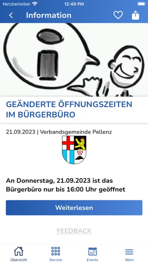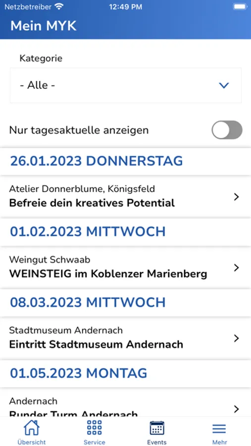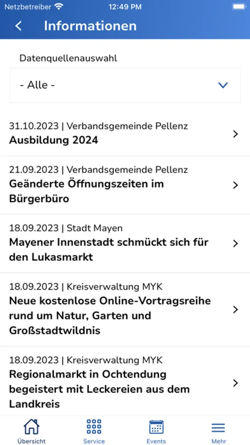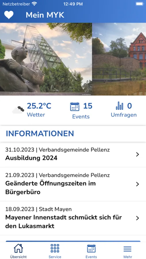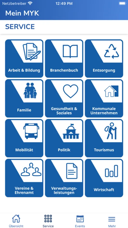 Die „Mein MYK-App: Der Landkreis Mayen-Koblenz für die Hosentasche. Ob Informationen rund um Freizeitgestaltung, Lokalnachrichten, Katastrophenwarnungen oder Verwaltungsleistungen - all das und noch mehr ist Teil von MeinMYK. Die App wird gemeinsam mit den kreisangehörigen Städten und Kommunen umgesetzt und wird sich in den kommenden Monaten und Jahren stetig weiterentwickeln.