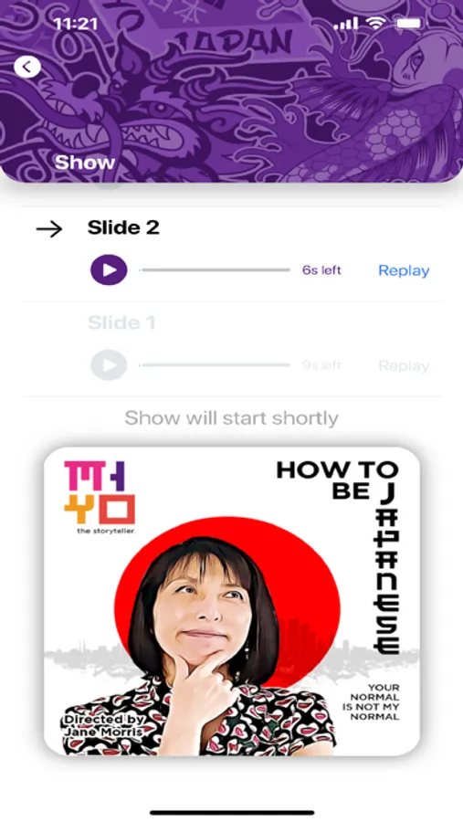 Slide Teller was born out of a powerful vision: to empower individuals with visual impairments and grant them seamless access to the captivating world of storytelling. Tailored exclusively for Miyo's extraordinary show, "How to be Japanese," our groundbreaking technology enables individuals with visual impairments to access audio descriptions of slides easily. We believe in a world where everyone can experience the magic of storytelling regardless of their abilities.