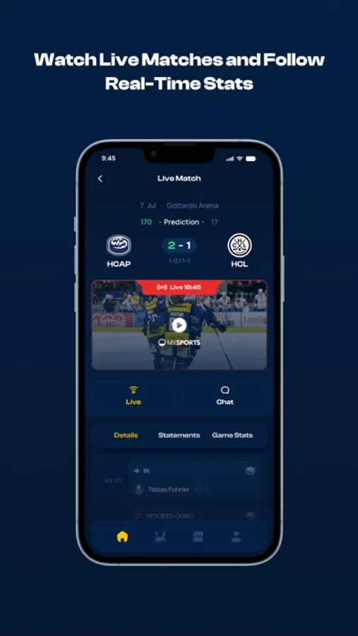 Stay connected with HC Ambrì Piotta like never before. Get real-time match stats, stream live games, and chat with fellow fans during the action. Participate in predictions, vote for your favorite players, and check in at the arena to earn points. Use your points to unlock rewards in the shop. Download now and join the HC Ambrì Piotta community!
