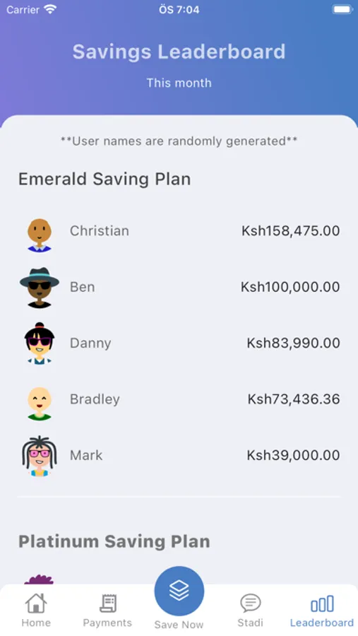 • Platinum: Minimum monthly savings of Ksh 10,000, 6% annual profit.