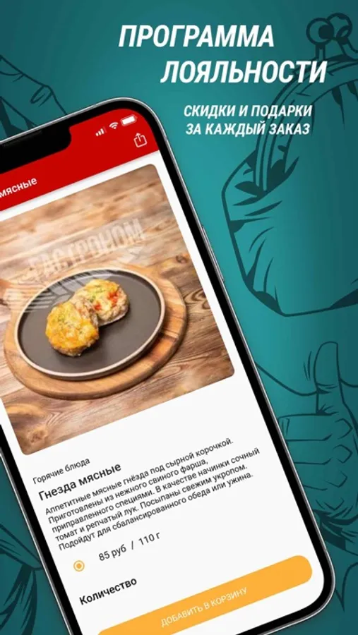 В мобильном приложении “Гастроном вкуса” вы можете оформить заказ на: