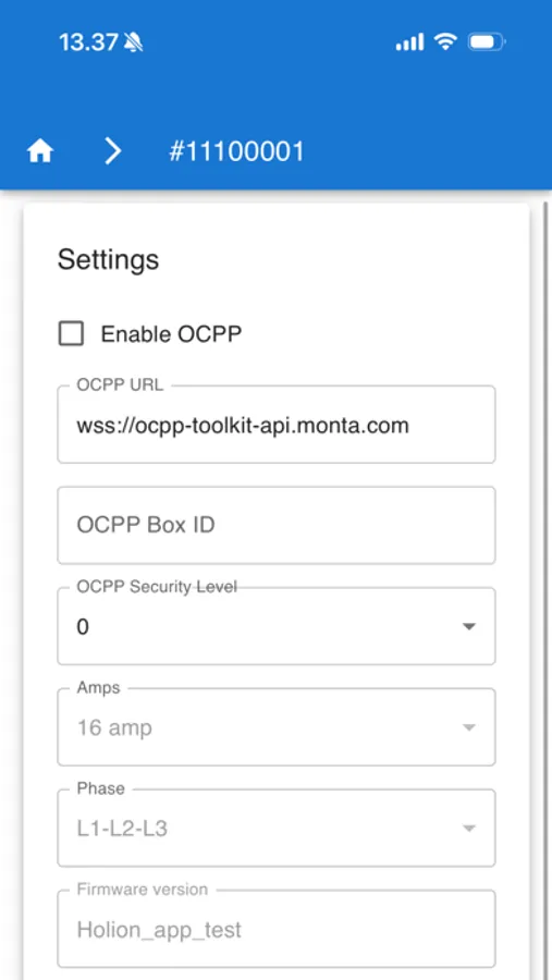 • OCPP Settings: Easily configure your Open Charge Point Protocol (OCPP) settings.