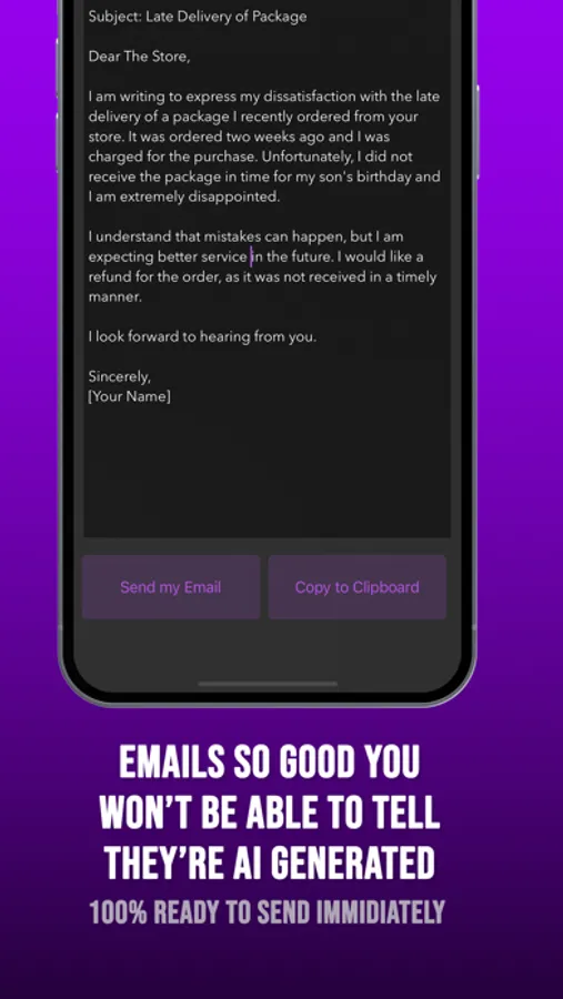 Say farewell to the frustration of staring at a blank screen and struggling to find the right words. With the "AI Email Generator," you can effortlessly craft emails that leave a lasting impression. Elevate your communication game and make every email count. Download the "AI Email Generator" from the App Store now and experience the future of email composition. Your thoughts, our words – a perfect partnership every time.