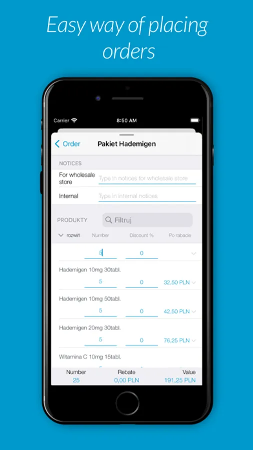 Allows planning and reporting pharmacy visits, transfers orders from pharmacies to pharmaceutical wholesale stores to be realised, controls the status of the orders, as well as contains the most detailed commercial database of pharmacies and doctors in Poland.