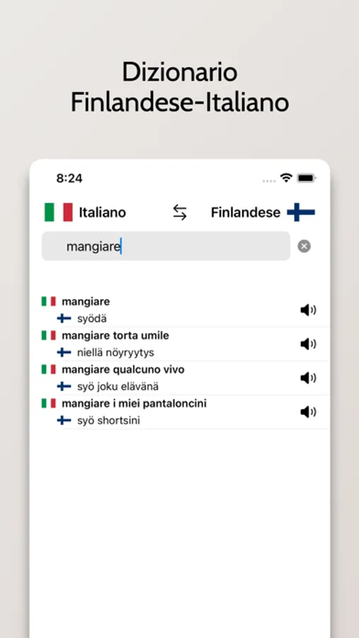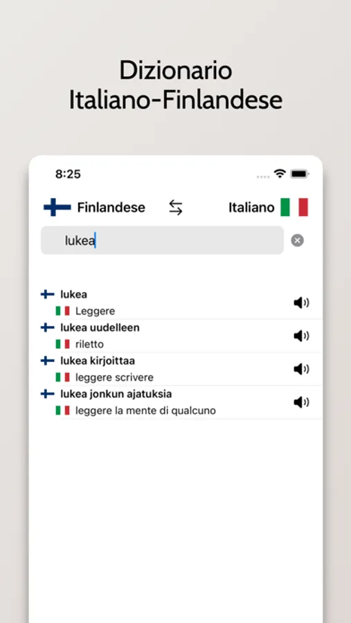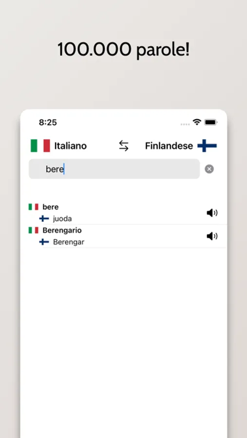 - Possibilità di cercare a partire da parole in Italiano o Finlandese