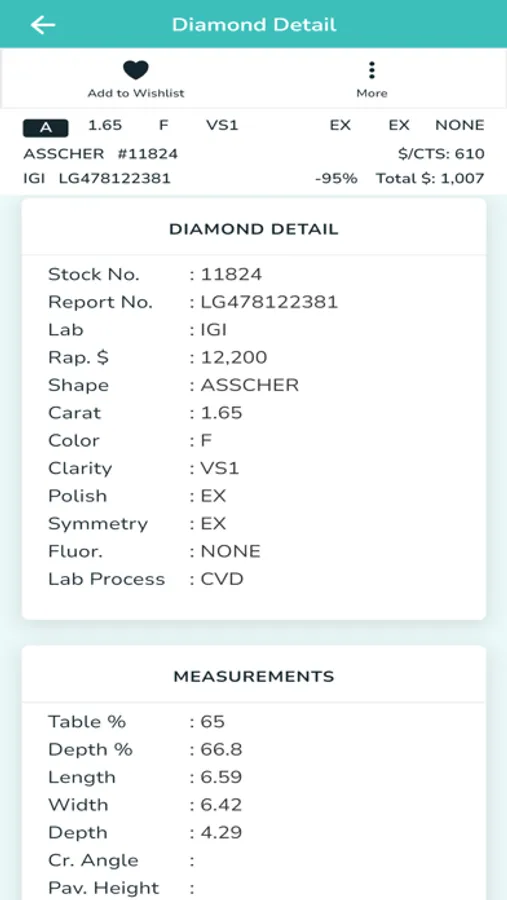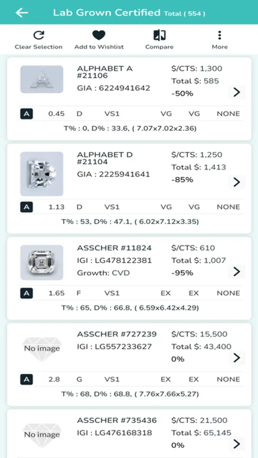• DNA: This feature will enable you to get all the possible details of the diamond you would need.