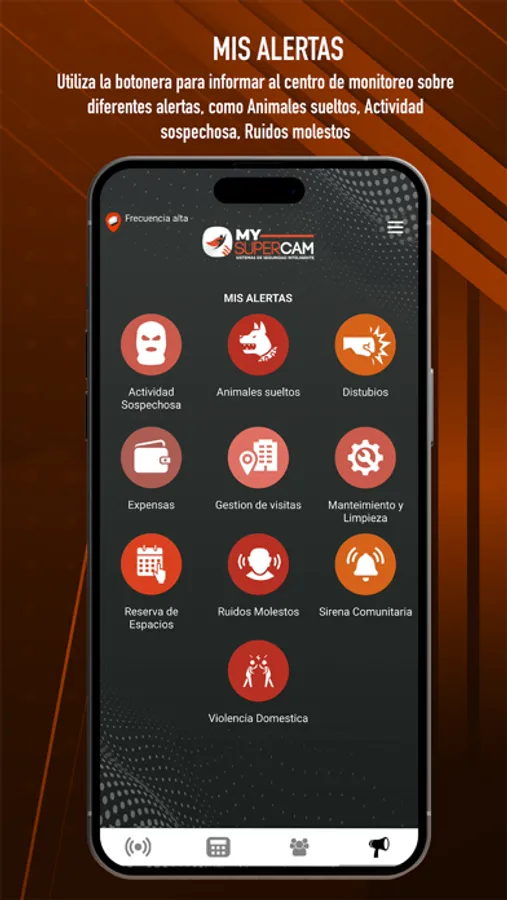 - Permite tener alertas a elección del country/barrio cerrado, panel de alertas totalmente personalizables para que los habitantes y sus familias puedan comunicar demás incidencias o emergencias por ejemplo, animales sueltos, luminarias dañadas, limpieza de espacios, ruidos molestos, actividad sospechosa entre otras, por medio de My SuperCam (MIS ALERTAS)
