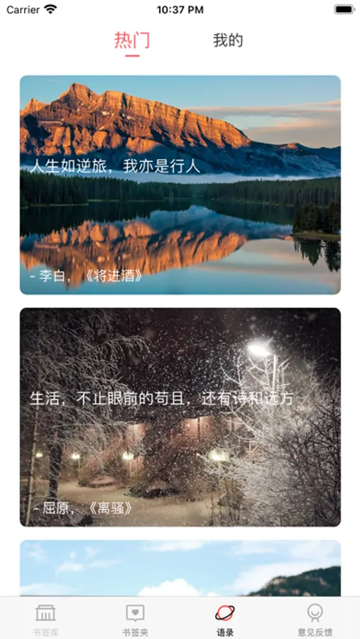 语录列表:经典名言警句,也可修改记录自己的语录。
