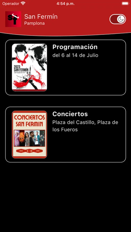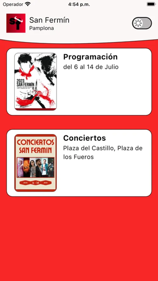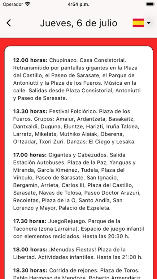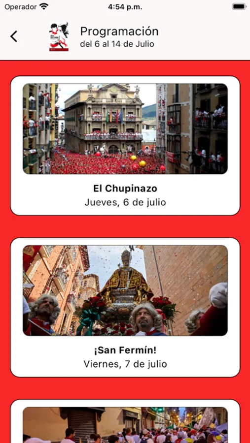 Explore the complete program of San Fermín festivities with our specialized application. We provide you with the detailed schedule of all events, from the thrilling bull runs to the vibrant parades and more. The best part is, you can enjoy the app in multiple languages. Discover the rich culture and traditions of Pamplona as you immerse yourself in the celebration. Our app is designed to keep you informed with precise and updated schedules for each activity. If you're seeking the full San Fermín experience and the convenience of accessing the program in your preferred language, this is your ideal app. Streamline your festival experience and ensure you don't miss anything important. Download now and get ready to uniquely experience San Fermín.