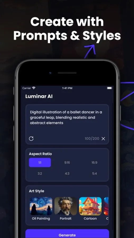 Luminar invites you to rediscover your world through the lens of AI-generated artistry. It's not just an app; it's a transformative experience that turns your imagination into tangible, shareable beauty. Elevate your creative journey – download Luminar today and witness the fusion of technology and art in action.