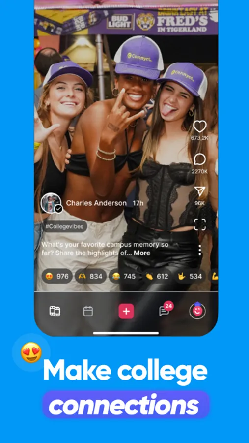 Endless Entertainment: Your personalized feed brings you a never-ending stream of the college videos and events tailored just for you. See what's trending on campus and join in.