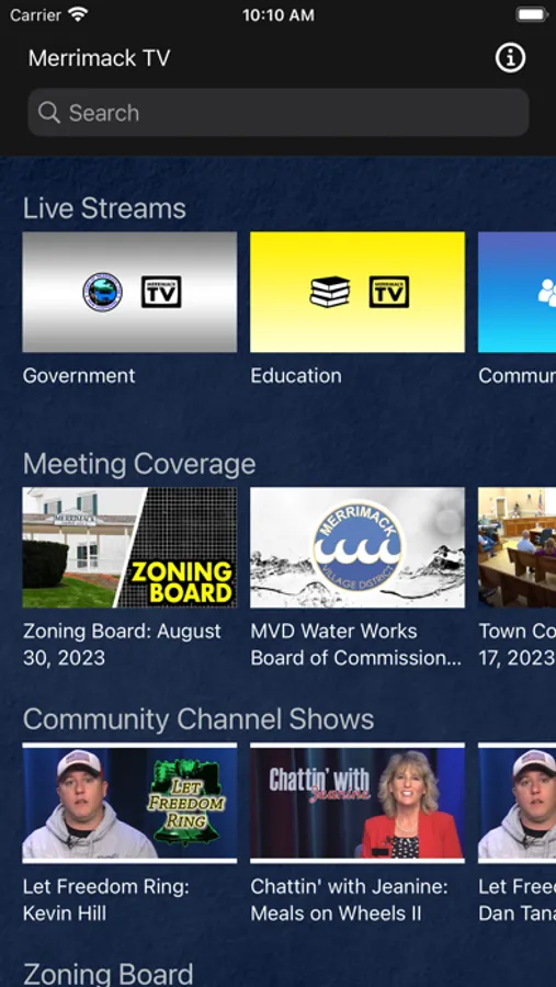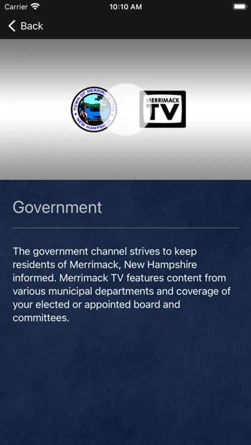 The Merrimack TV app features locally produced content from New Hampshire and gives you the ability towatch live programming from anywhere. Users can stay informed with live and recorded gavel-to-gavelcoverage of municipal and school meetings. Get to know the community through original shows and events.Families and friends from throughout the country can enjoy Merrimack High School varsity games, studentconcerts, and more using the Merrimack TV app.