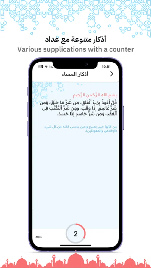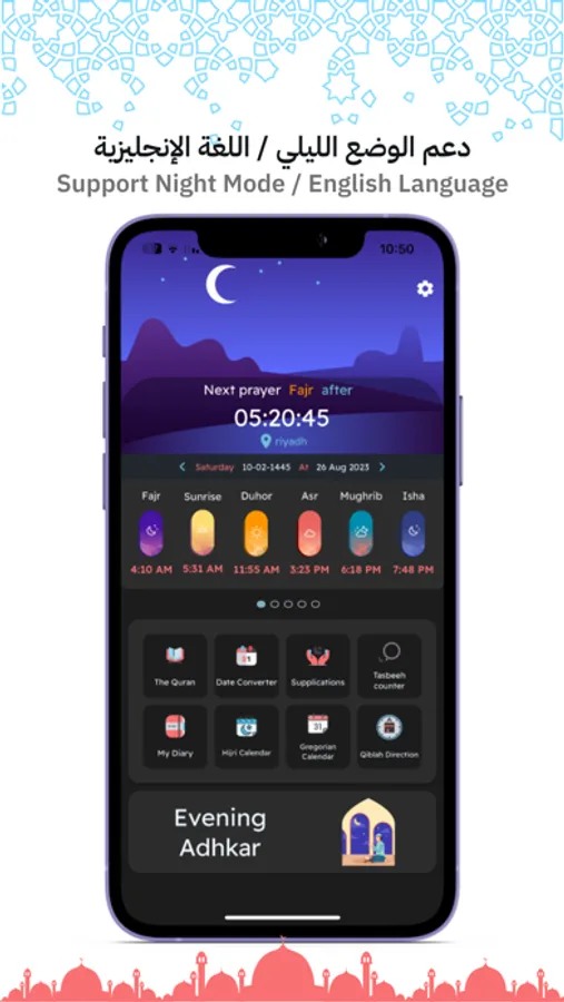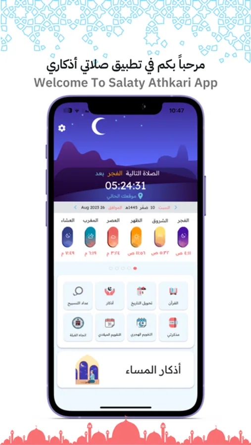 We aspire to be the best application for your daily use that contains the calendar, prayer times, dhikr, supplications and the Qur’an, a constantly renewed, simple and attractive application.