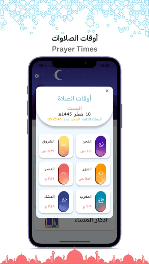 * (Prayer) Prayer times according to the local time of your city and based on your geographical location.