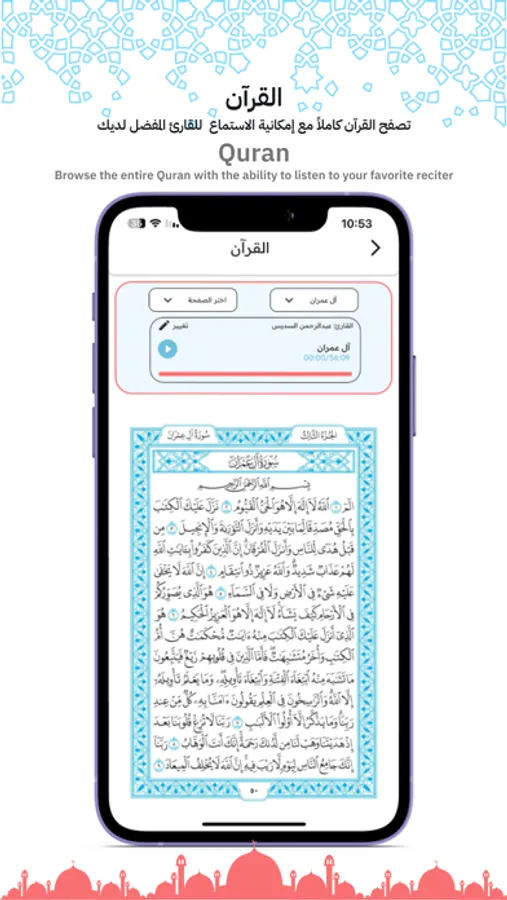 * (The Holy Quran) You can browse and read the Holy Quran completely, as well as listen to your favorite reciter.